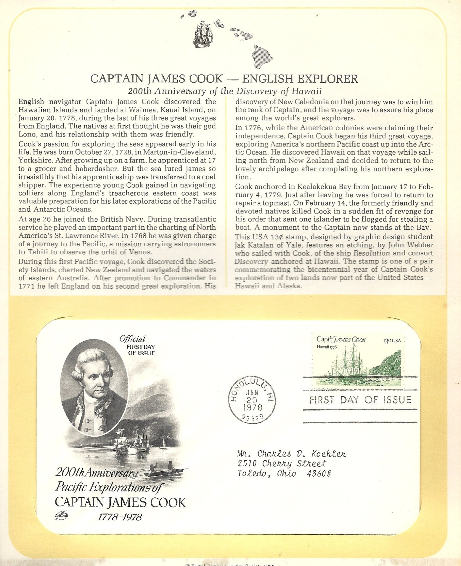 01 20 1978 FDC WH Captain James Cook