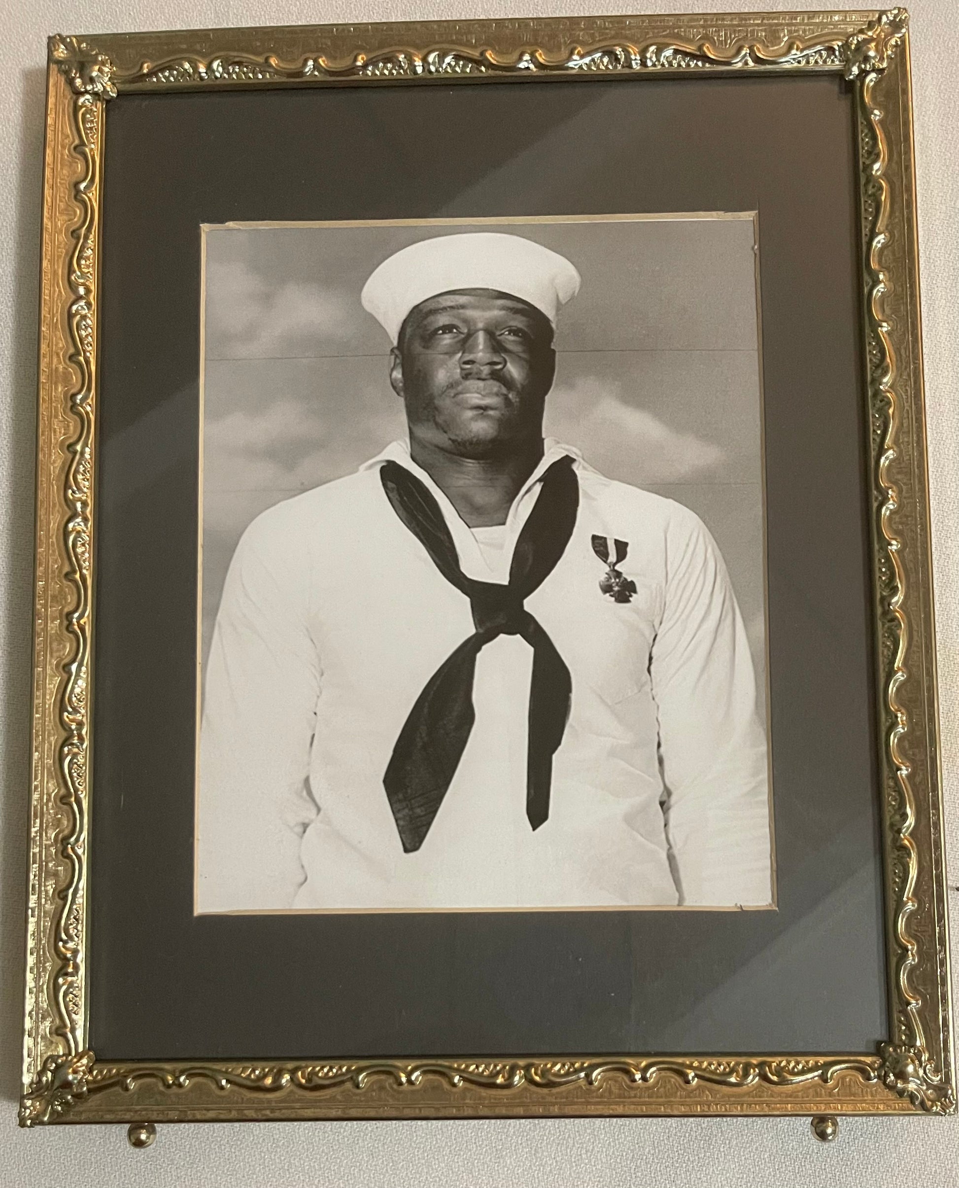 This historic photograph captures Doris "Dorrie" Miller, a celebrated World War II hero known for his extraordinary bravery during the attack on Pearl Harbor. A powerful tribute to his legacy, this image offers a rare glimpse into the life of an iconic figure who broke barriers and earned the Navy Cross for his valor. Ideal for collectors and history enthusiasts, this photo serves as a meaningful reminder of courage and dedication in the face of adversity.