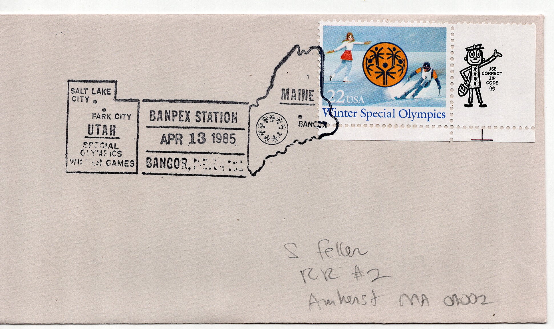 FDC 04 13 1985 Bangor Maine Winter Olympics